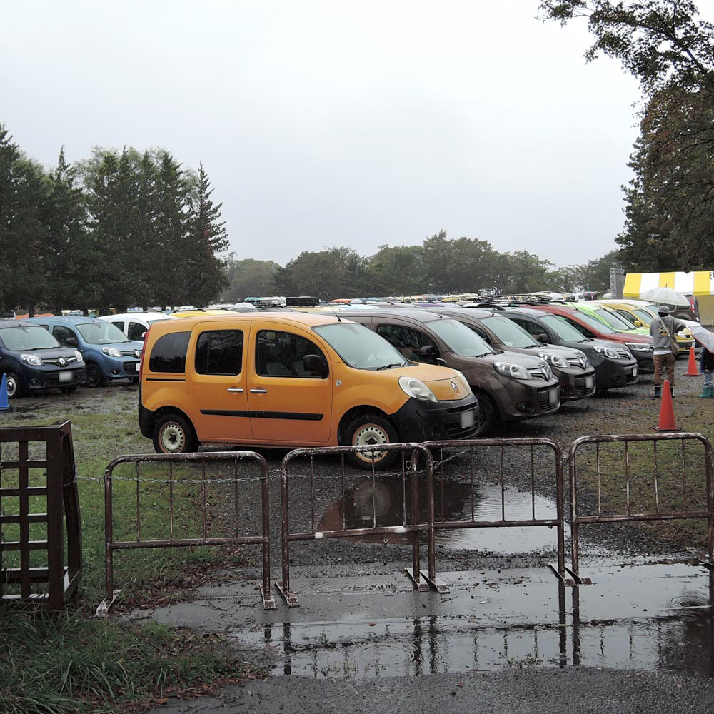 当日は朝から大粒の雨…。10時前に会場近くへ到着。会場ガラガラかな?と不安でしたが駐車場入り口はカングーで大渋滞。クルマを降りるまで40分を要しました汗。会場時間(9時)に訪れた方がスムーズに入れたのでしょか?ジャンボリーに対するオーナー達の意気込みを感じます。