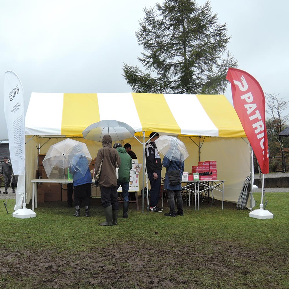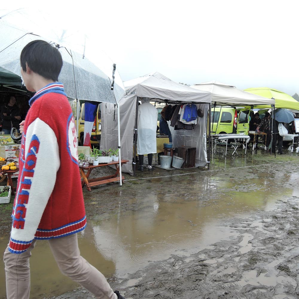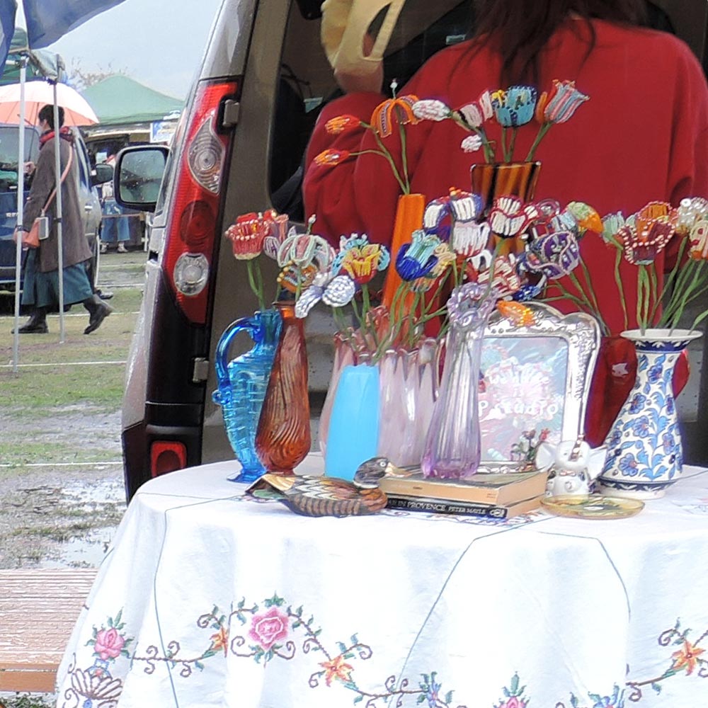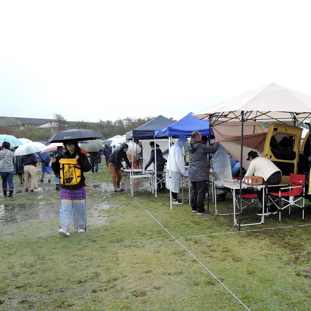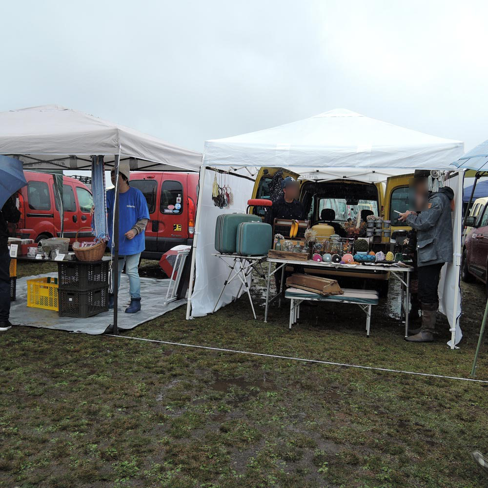 残念ながらこの雨で皆さん元気がありません。例年フリマーケットは盛り上がるのですが…。